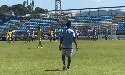 Jogadores do Tubarão protestam, durante treino, contra falta de pagamentos