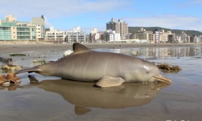 Filhote de toninha é encontrado morto em praia de Laguna