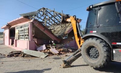 Quiosque é demolido na praça Seival, no Mar Grosso, em Laguna