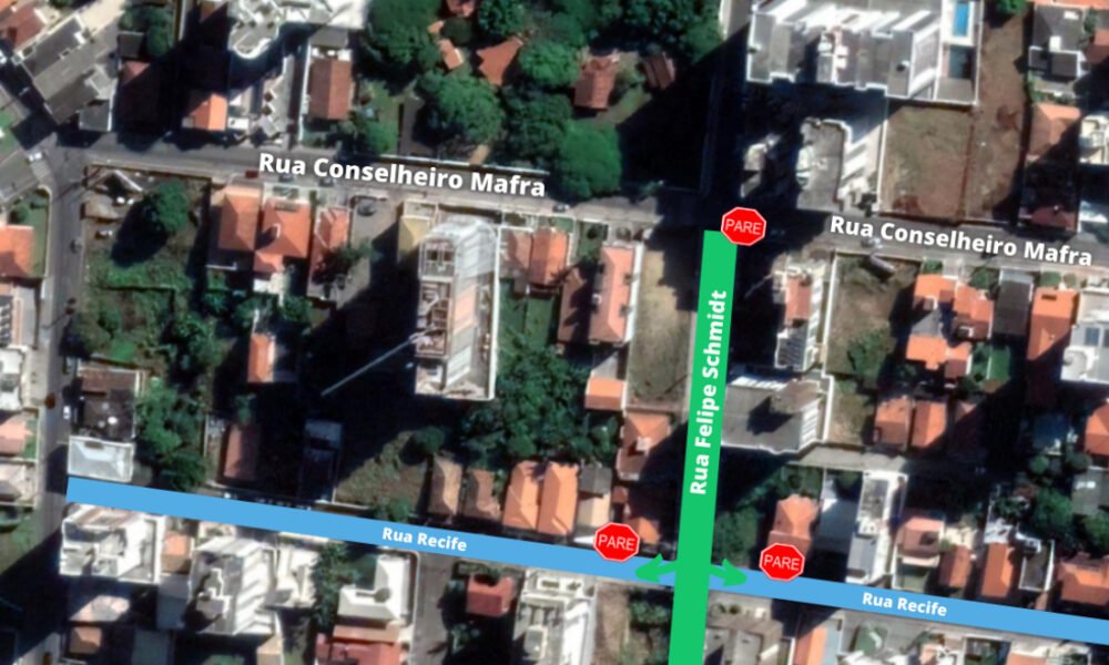 O cruzamento entre as ruas Felipe Schmidt e Recife, nas proximidades da prefeitura de Tubarão, terá uma alteração no sentido preferencial de passagem livre de veículos nesta quarta-feira (15). A partir desse dia a parada obrigatória será de quem segue pela rua Recife, ficando a passagem livre pela rua Felipe Schmidt.