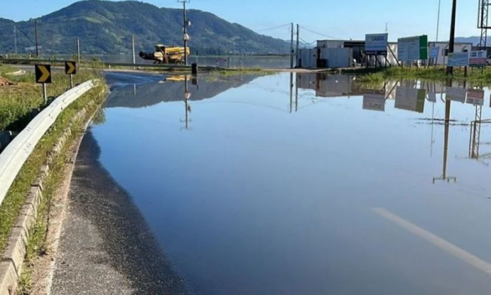 A rodovia está interditada desde as inundações da última semana. A estrada ficou submersa após o rompimento do dique (barreira de contenção) que recebe águas do Rio Capivari.