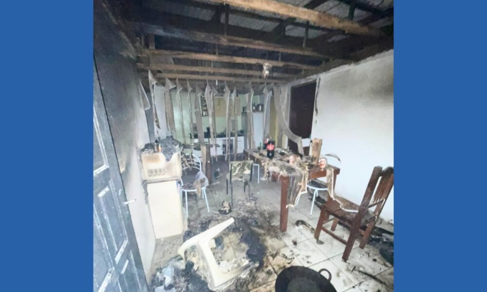 As chamas se propagaram para o forro, de PVC. O incêndio foi extinto pelos próprios moradores e vizinhos com água e extintores de carro.