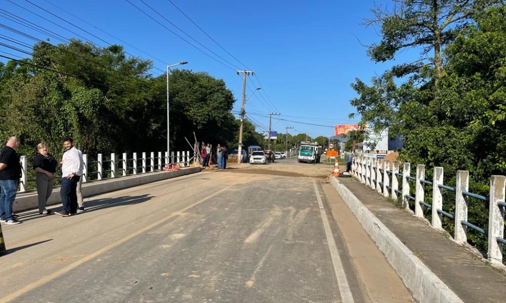 O tráfego na ponte na Avenida Nilton Augusto Sachetti, no bairro Santo André, em Capivari de Baixo, foi liberado. Ônibus, vans e carros já podem atravessar normalmente.