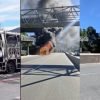 Ônibus pega fogo e motociclista morre após acidente em SC