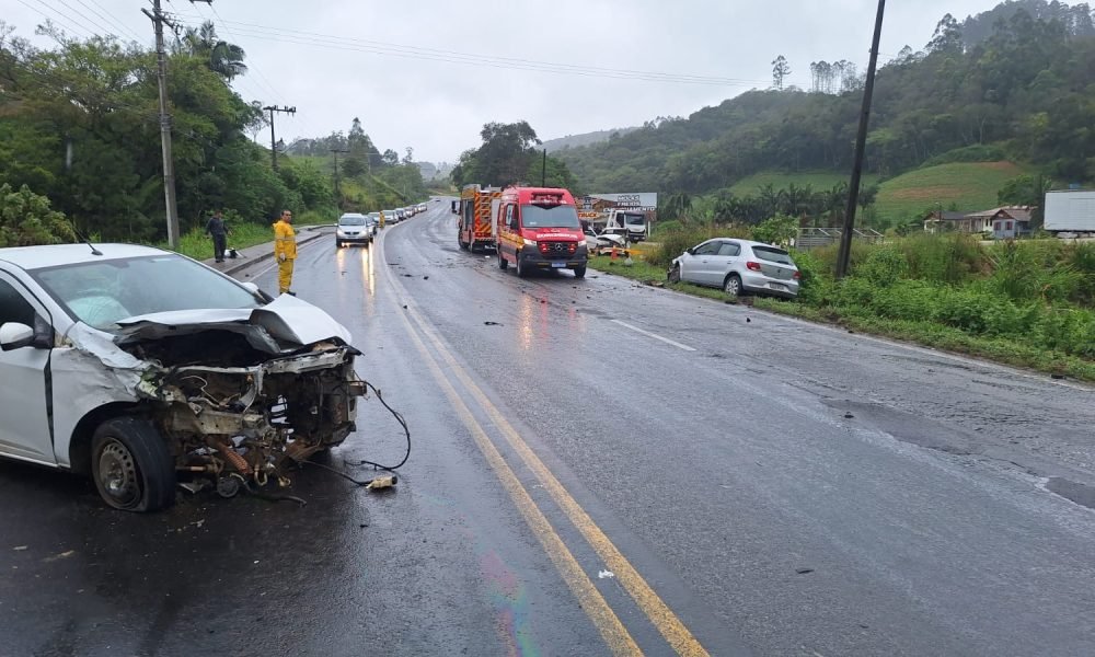 Um homem de 30 anos morreu em um grave acidente envolvendo três carros na tarde deste sábado (18), na SC-370, em Braço do Norte, nas proximidades do bairro Rio Bonito.
