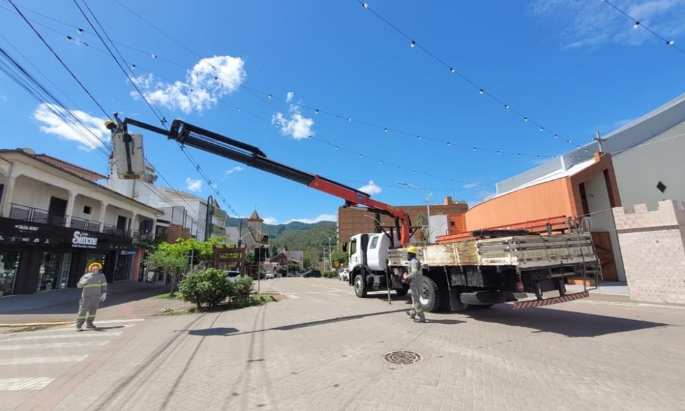 O tradicional varal de luzes, com mais de seis mil lâmpadas colocadas em toda a extensão da Avenida Pedro Zappelini, já estão sendo colocados, por meio de uma parceria com a Cergral.